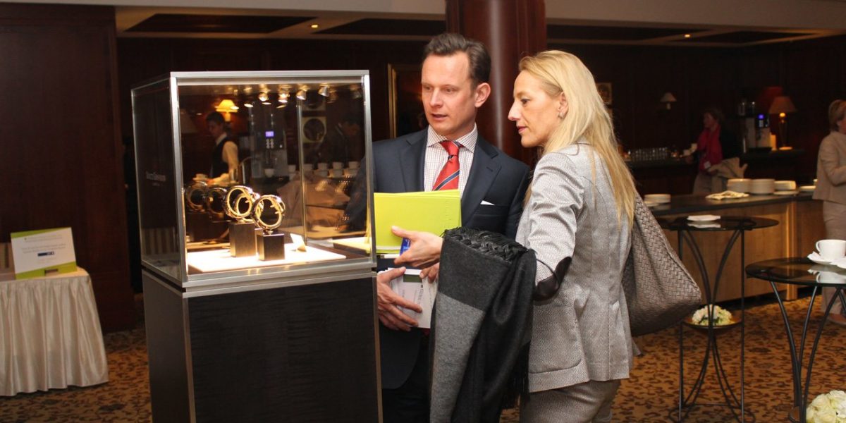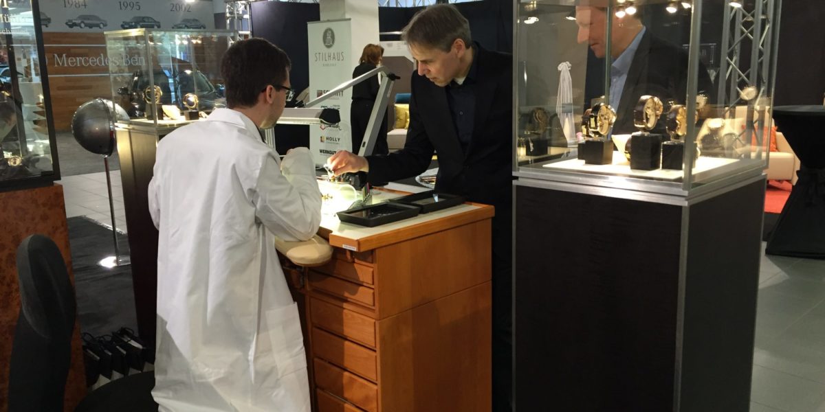 Glashütte, Koblenz: Am 16. und 17. April 2016 präsentierte Grossmann Konzessionär CWM Carl Willy Müller im Rahmen der Premiummesse Koblenz seine Diamantbank und Goldschmiede sowie Grossmanns pure Uhrm...