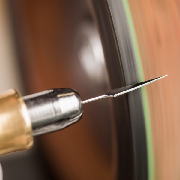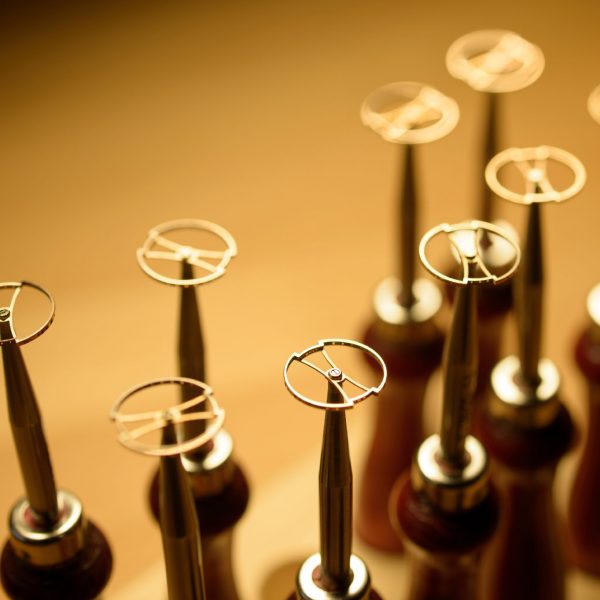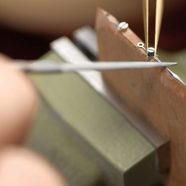 Vom Schleifen mit Diamantfeilen bis zum Anlassen über offenem Feuer erhalten die Zeiger ihre einzigartige Form und Körperlichkeit. Durch aufwändige Handarbeit entstehen kleine Meisterwerke, die das präzise Ablesen der Zeit garantieren und jede Uhr zu einem Unikat machen.
