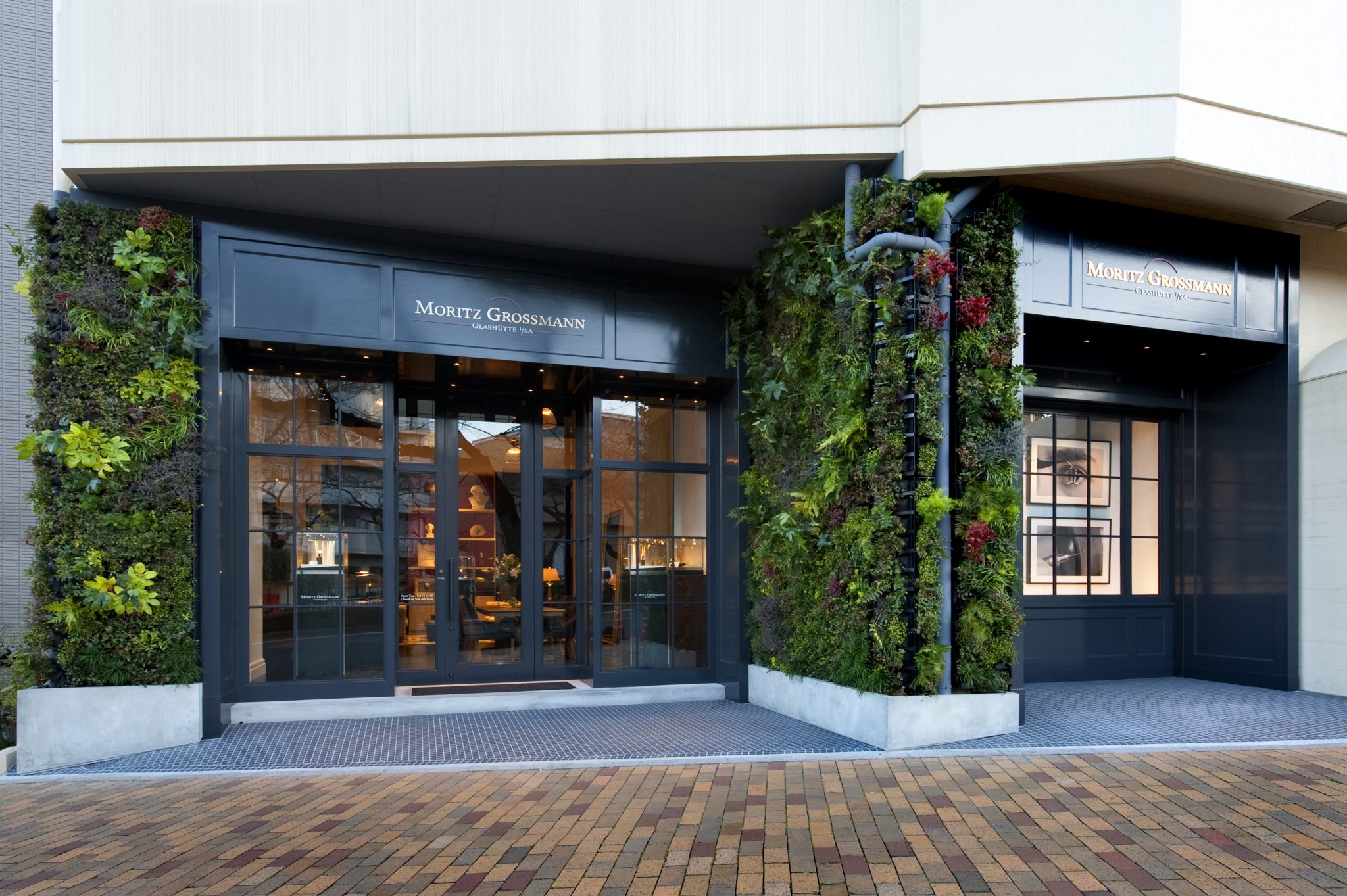 Die deutsche Luxus-Uhrenmarke Moritz Grossmann aus Glashütte hat ihre weltweit erste Boutique in Tokio eröffnet. In den Räumlichkeiten einer ehemaligen Druckerei, auf einer Fläche von über 100 Quadratmetern und sieben Metern Deckenhöhe, sorgten die Architekten und Interior-Designer mit ihrer Planung für ein großzügiges Raumgefühl. Das Ambiente der Boutique besticht durch harmonische Farbgestaltung und raffinierte Beleuchtung. Besonderen Wert legten die Inneneinrichter auf den Wohlfühlcharakter, der den Aufenthalt des Kunden zu einem Erlebnis machen soll. Eine restaurierte Heidelberger Druckmaschine erinnert dabei an die ehemalige Druckerei, aber auch alte Uhrmacherwerkzeuge wurden in die Gestaltung der Räume integriert. Hängende Gärten im Eingangsbereich harmonieren mit den Kirschblüten der Harimazaka-Allee.