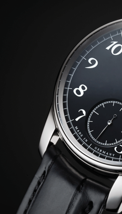 Sie verleihen der 37 ARABISCH gleichzeitig Dynamik und Eleganz mit einem feinen Nachklang aus der Ära des Swing. Für das Gehäuse mit 37 mm Durchmesser wurden die charakteristischen BENU Zeiger maßstabsgetreu verkleinert. Durch den Sichtboden präsentiert sich dem Uhrenkenner die ausgewogene Komposition des Kalibers 102.1 im High-Artistic-Finish.