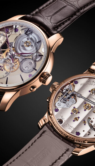 Bislang ließen sich Highlights wie die Grossmann’sche Unruh, der handgravierte Unruhkloben oder das dreifach sonnengeschliffene Sperrrad erst auf der Uhrenrückseite bewundern. Mit der Entwicklung des gespiegelten Kalibers können sie bereits auf der Zifferblattseite gezeigt werden. Dieses Modell präsentiert die Backpage des Uhrwerkes in einem außergewöhnlich großen Zifferblattausschnitt gleich einer prominenten Bühne. Die BACKPAGE erscheint in der Gehäuseausführung Platin limitiert auf 18 Exemplare und in Roségold.