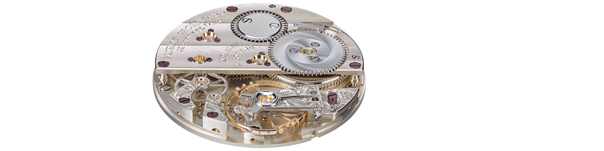 Alle Gravuren auf der 3/5-Platine, wie auch die Gravur auf dem Ankerradkloben, dem Sekundenrad- und dem Unruhkloben werden von Hand gestochen.