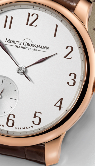 Augenfälliges Kennzeichen der TEFNUT 36 ist die kleine Sekunde auf „7“ Uhr. Sie wird tiefer in das Zifferblatt eingedreht, damit sich Minuten- und Stundenzeiger möglichst nah über die Minuterie bewegen können. Auch in der feinen und dennoch sehr deutlichen Sekundenskale wird der Grossmann’sche Anspruch an die Gestaltung eines Präzisionszeitmessers sichtbar. Der mit einem kleinen Nodus körperlich ausgestaltete Zeiger vollendet die kleine Sekunde.