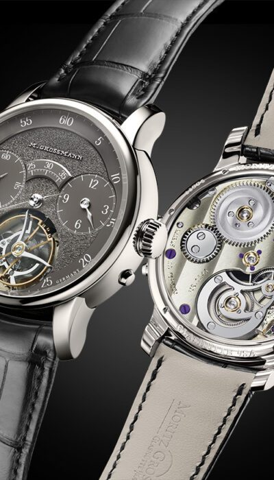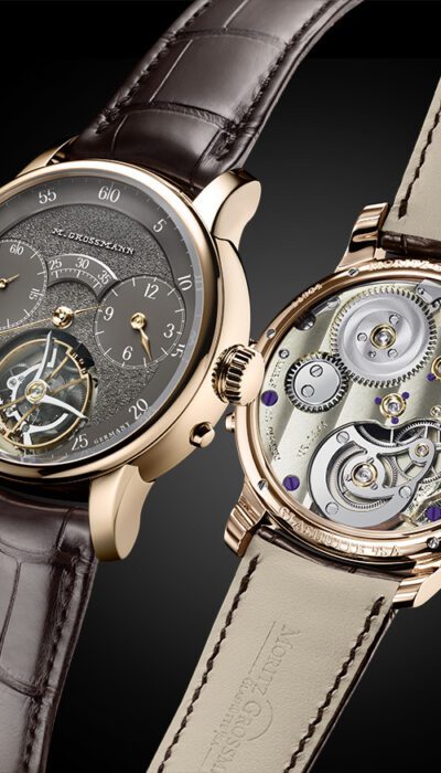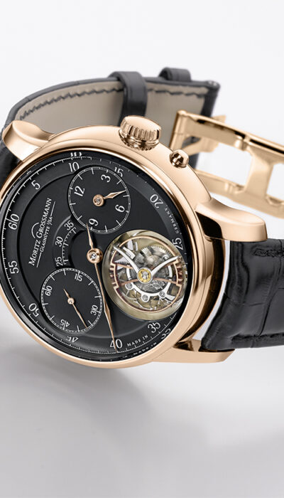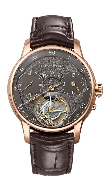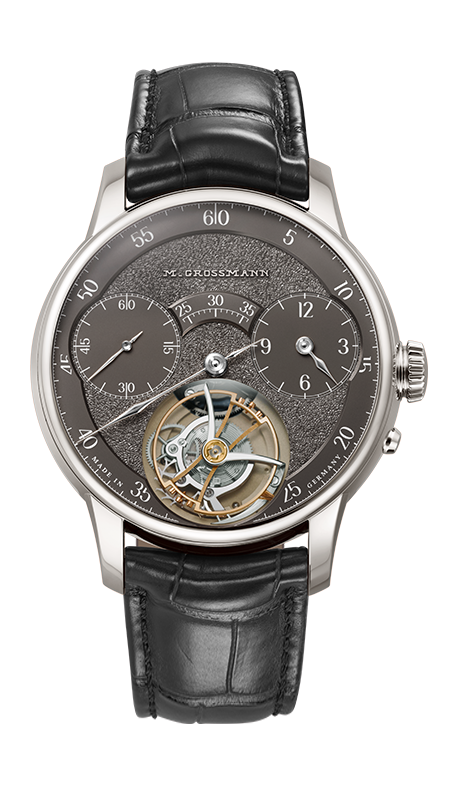 Für die Konzeption des Tourbillons zusammen mit der Grossmann’schen Unruh wurden die klassischen uhrmacherischen Umsetzungen hinterfragt. Gemäß dem Anspruch der Grossmann’schen Uhrmacher an Präzision, Effizienz und Ästhetik sind zentrale Funktionen des Uhrwerks für die TOURBILLON völlig neu gelöst. Basierend auf der Lehre des bedeutenden Glashütter Uhrmachers Alfred Helwig und seiner Entwicklung des fliegenden Tourbillons entstand das Grossmann’sche Drei-Minuten-Tourbillon. Die ungewöhnliche Größe und Gestalt des Tourbillonkäfigs wird durch eine längere Umlaufzeit auf das Schönste inszeniert. Der zum Patent angemeldete Sekundenstopp mit Haarpinsel vollendet den Mechanismus im Sinne eines Grossmann’schen Präzisionszeitmessers. Die TOURBILLON erscheint in einer exklusiven Limitierung von 50 Stück weltweit.